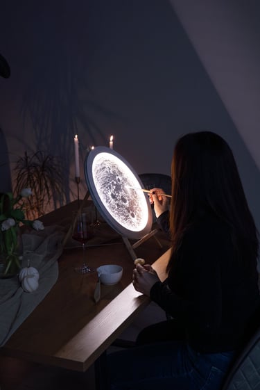 Приглашаем вас на творческий мастер-класс в группе, где вы забудете о суете и создадите собственный светящийся шедевр — Луну из рельефной пасты на арт-борде с элегантной подсветкой.